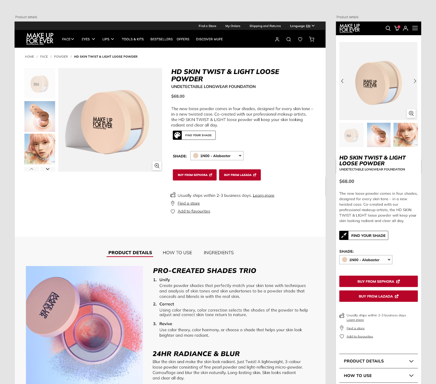 A polished e-commerce platform that communicates Make Up For Ever’s artistry and precision — at any scale.