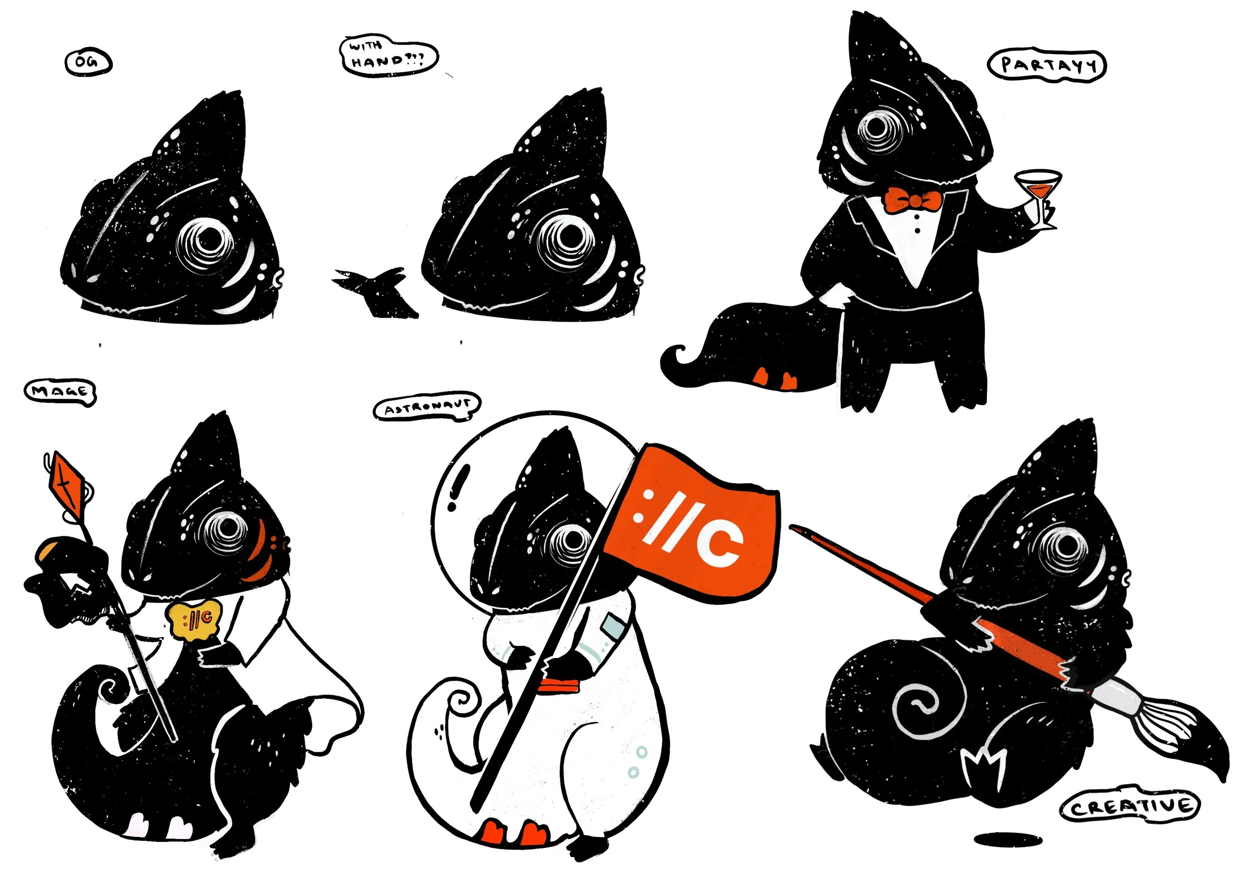 The first iteration of the chameleon mascot emphasized a polished and lighthearted tone, using smooth forms and clean detailing to reflect Convertium’s approachable yet professional identity. The design aimed to position the chameleon as a versatile, playful character that symbolized adaptability in the fast-evolving digital landscape. This sketch served as a foundation to capture the brand’s core values while exploring character-driven storytelling in a modern, illustrative style.